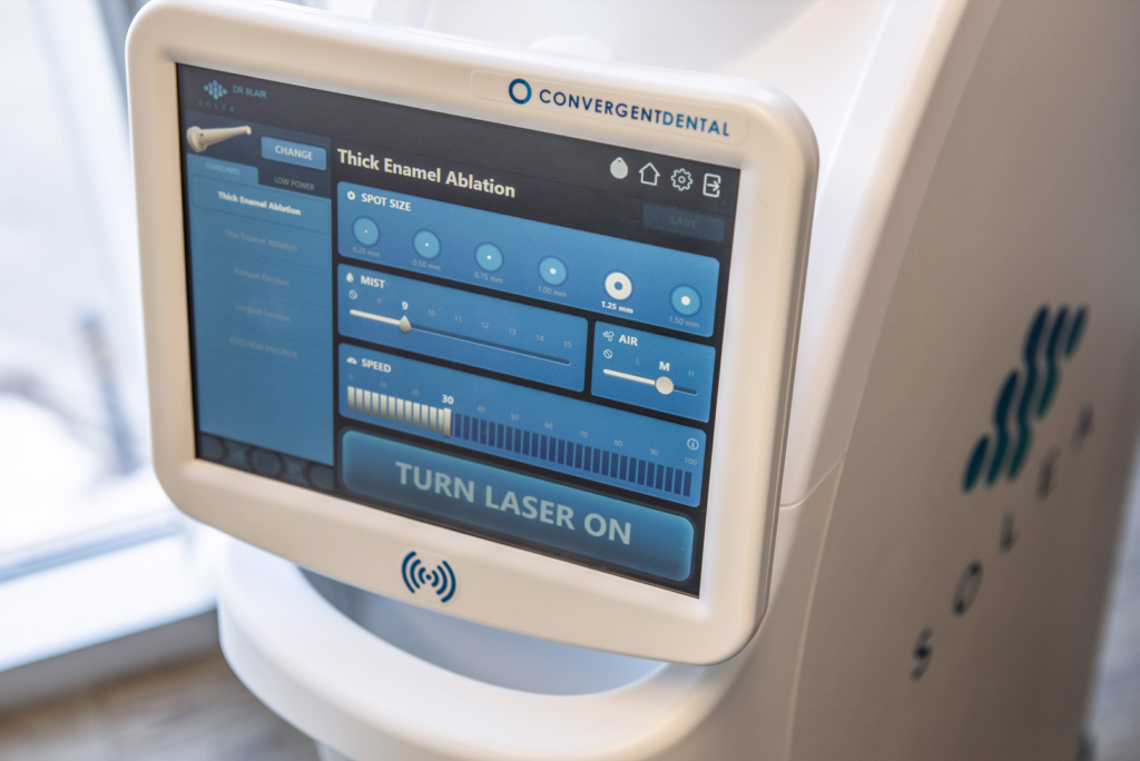 Yes, it’s safe. Solea is a medical device that has been cleared by Health Canada to cut enamel, gums, and bone. All you need to do is wear protective eyewear that we’ll provide during your appointment. Learn more about Solea laser technology.